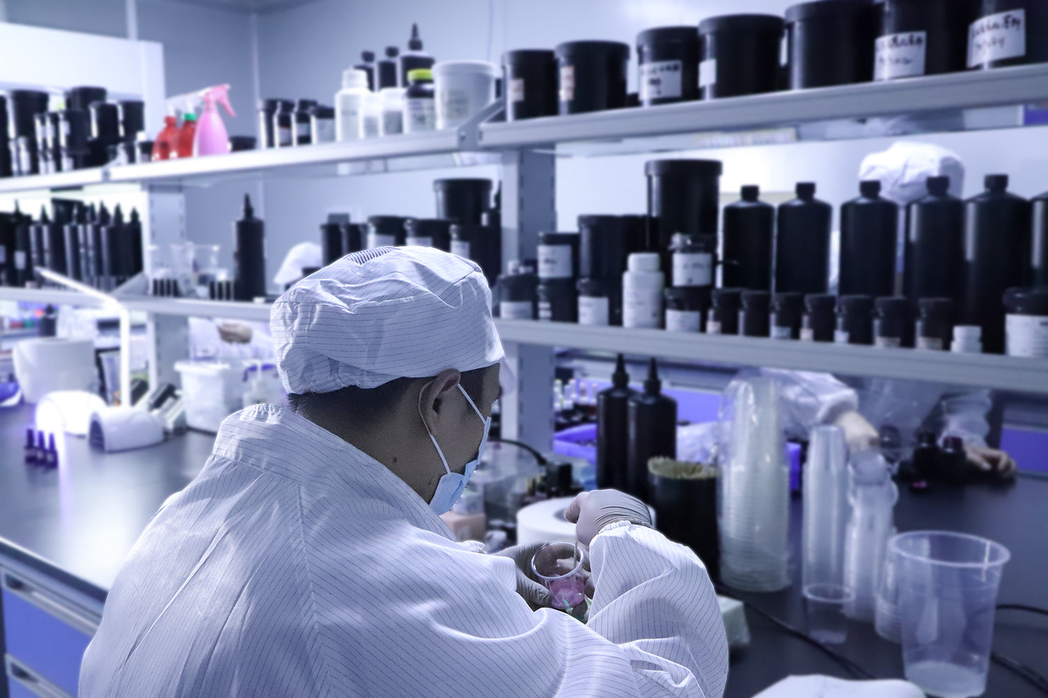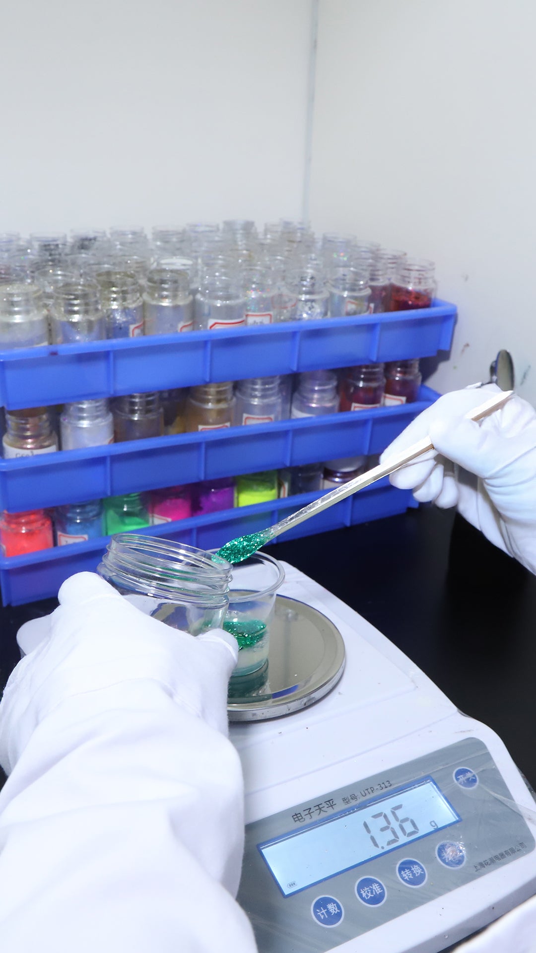 100가지가 넘는 글리터와 안료 파우더 중에서 선택하여 제품의 밝기, 질감, 색상 효과를 정밀하게 맞춤 설정하세요.