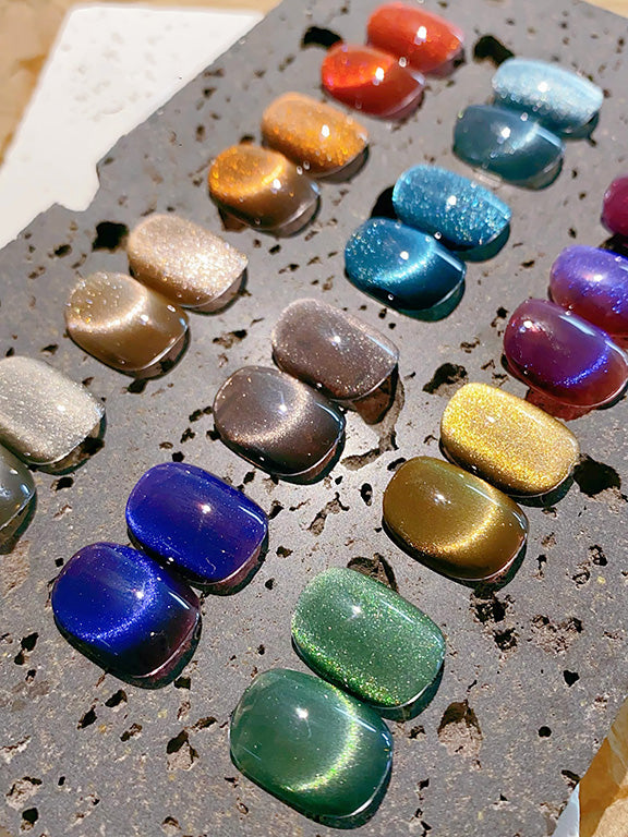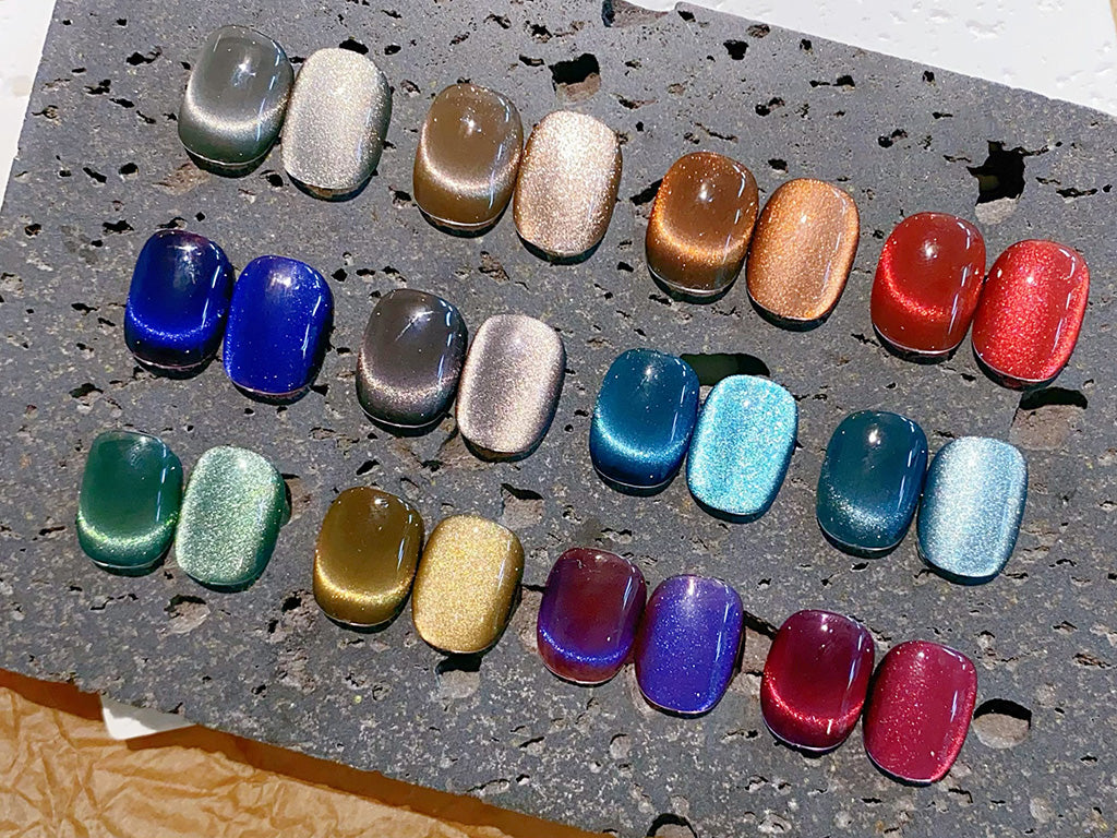 Features: Dark series product, fine glitter covers the entire nail, crescent moon-shaped cat eye light circle.